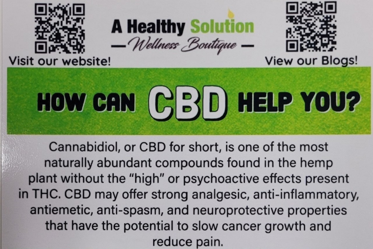 This extra layer of protection, personalized customization and excellent customer service is what sets A Healthy Solution Wellness Boutique apart from any dispensary, health food store or online company. Lorraine and her staff are knowledgeable and passionate about helping their clients navigate the challenges of health and wellness through the wonders of CBD.